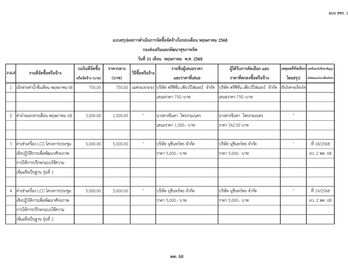 ประกาศกรมสุขภาพจิต เรื่อง ประกาศผู้ชนะการเสนอราคา จ้างเหมาบริการเก็บข้อมูลสถานการณ์สุขภาพจิตประชาชน (การสำรวจสุขภาพจิตประชาชนวัยทำงาน ปี 2568) โดยวิธีเฉพาะเจาะจง